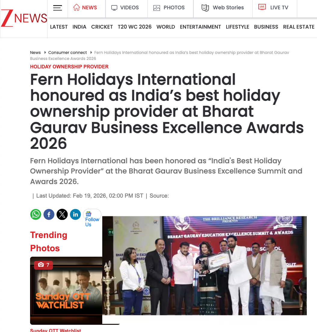 Fern Holidays ranked among India's Top 10 Holiday Membership Companies — Travel+Leisure IndiaExclusive resort expansion across 12 new destinations announced — Economic Times Travel30-year legacy: How Fern Holidays redefined holiday memberships — Business StandardFern Holidays wins 'Best Holiday Club' at National Tourism Awards 2024 — Times of IndiaLuxury meets value: Inside Fern's 500+ destination network — Condé Nast Traveller IndiaFern Holidays ranked among India's Top 10 Holiday Membership Companies — Travel+Leisure IndiaExclusive resort expansion across 12 new destinations announced — Economic Times Travel30-year legacy: How Fern Holidays redefined holiday memberships — Business StandardFern Holidays wins 'Best Holiday Club' at National Tourism Awards 2024 — Times of IndiaLuxury meets value: Inside Fern's 500+ destination network — Condé Nast Traveller India